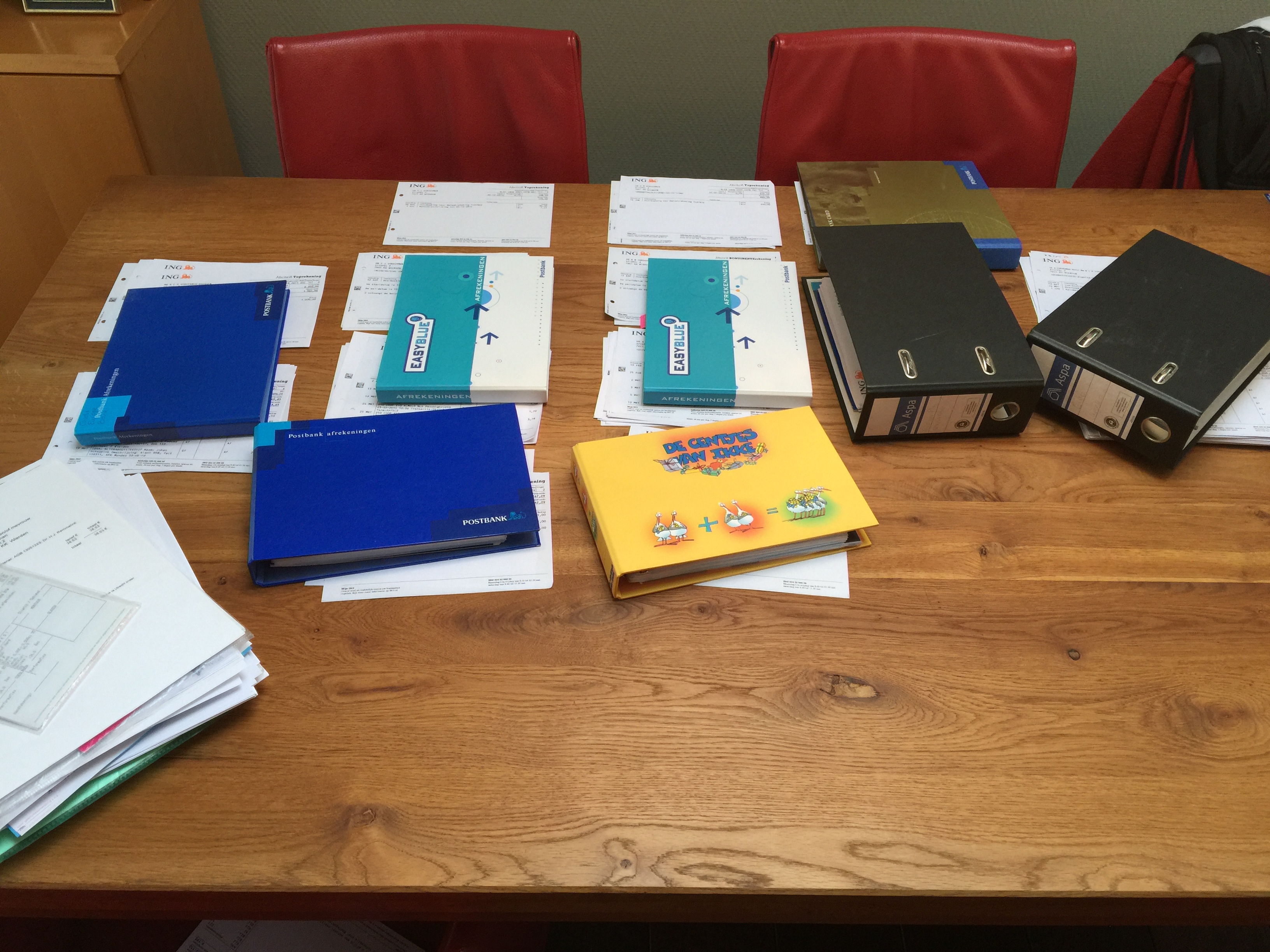 Vervolgens zijn de papieren aan de beurt. Je weet wel, bankafschriften, rekeningen en zo, die vanuit de brievenbus belanden in “dat ene laatje/bakje/kastje”… Maar ja, ze komen niet vanzelf in de ordners, heb nog steeds geen kaboutertjes gevonden die het voor mij gaan doen hihi… Dat doe ik in 2 stappen, eerst de bankafschriften. Dat gaat best vlotjes. Ik heb ze eigenlijk in “no-time” keurig opgeborgen op de daarvoor bestemde plek, en er ontbreekt er niet een! Yes!