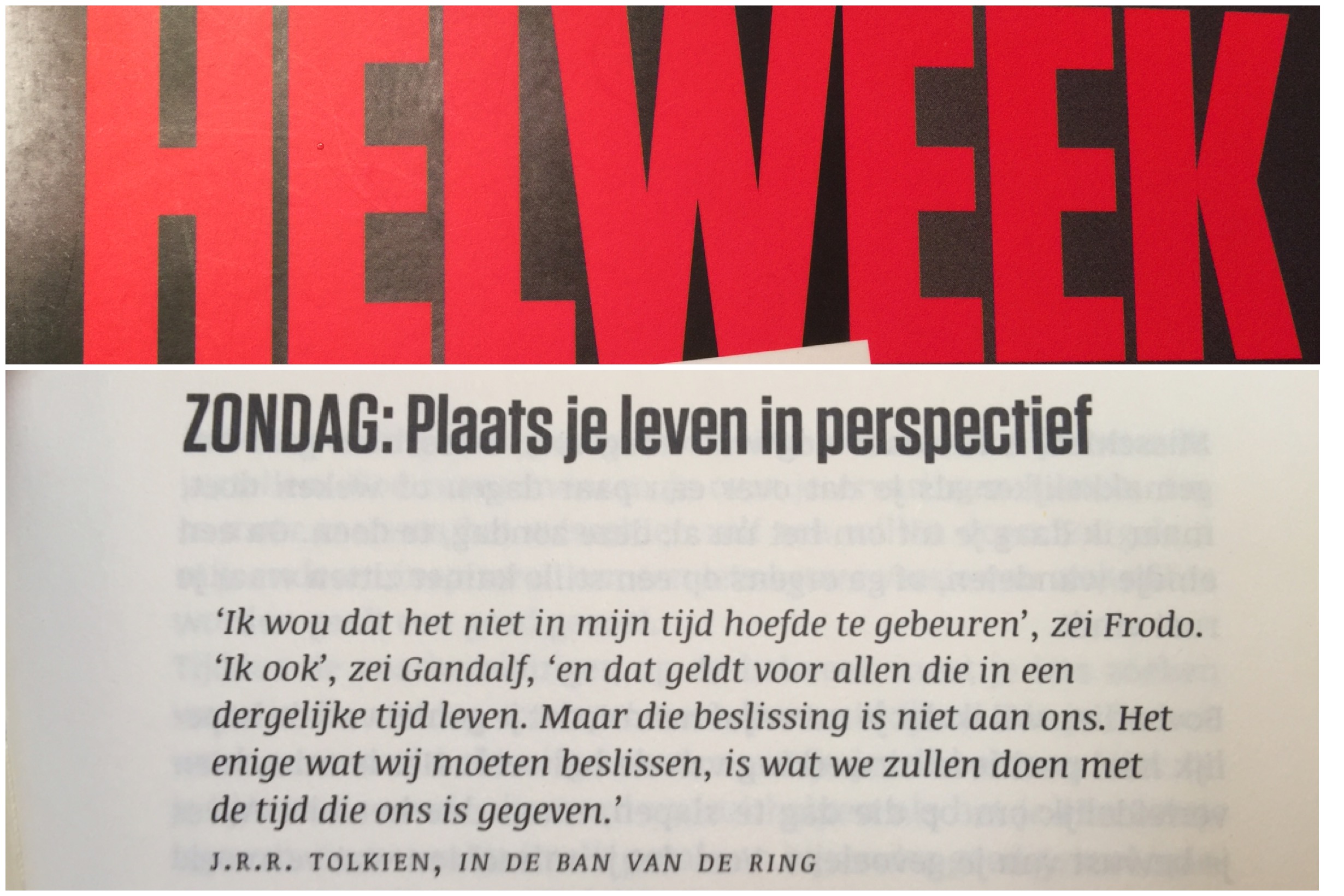 ‘s avonds heb ik erg weinig gedaan, behalve nog eens een keer het boek Helweek er bij pakken en even wat in lezen.