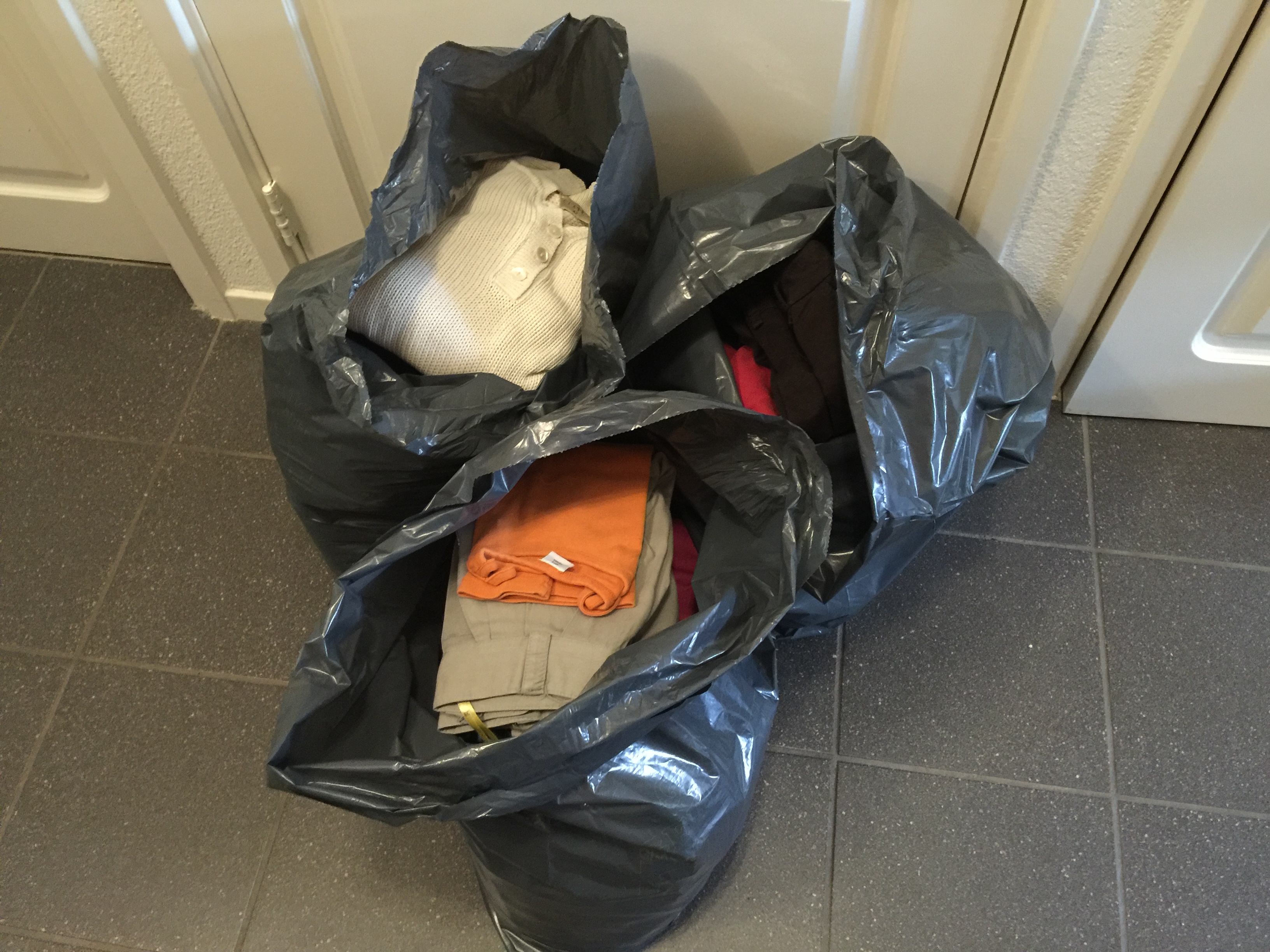 In de ochtend ben ik nog heel actief (en positief) bezig geweest om mijn kleding door te spitten. Alles wat te groot is of te oud heb ik weggedaan. De organisatie achter de kledingcontainer zal weer heel blij met mij zijn! Elk kledingstuk dat in een vuilniszak verdween onderging een keuring, in de trant van: ik verdien beter dan jij, jij bent te groot voor mij (YES) dus toch wel positief hihi…