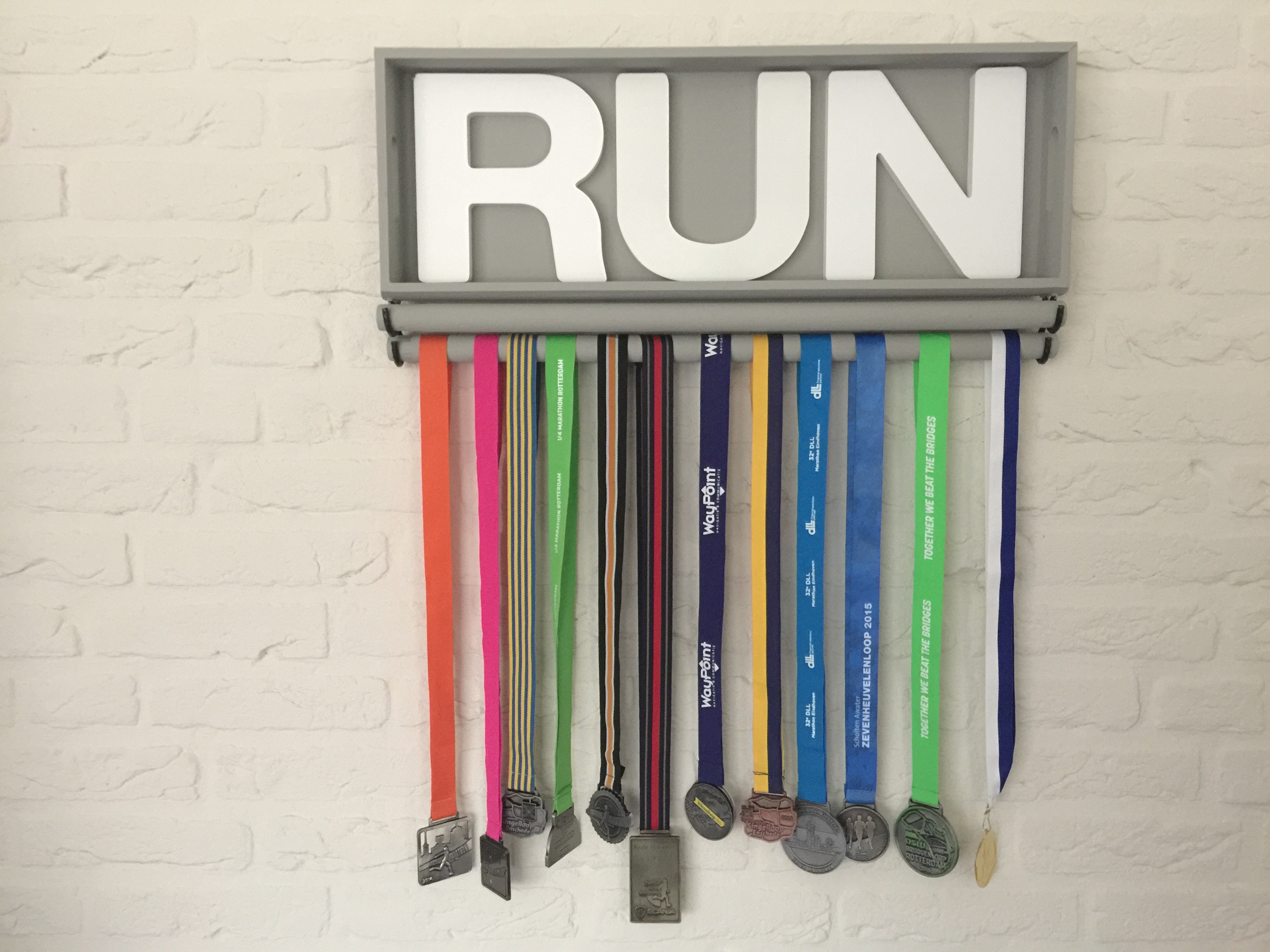 Woensdag was weer een drukke dag, maar ik had tussen de bedrijven door wel tijd om mijn medaillehanger af te maken. Mijn medailles hangen er al aan, maar een plekje voor de hanger heb ik nog niet: daarvoor moeten we eerst nog wat klus- en schilderwerk verrichten. Nu valt eigenlijk ook pas goed op, dat ik best veel wedstrijden heb gelopen waarbij ik geen medaille heb ontvangen: alle cross-wedstrijden, de Stationsloop, de Landalloop… Maar ach, dat betekent wel dat er nog genoeg ruimte is voor meer medailles! 😉